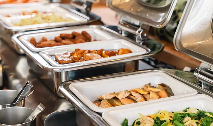 発酵バターの豊かな香りの焼きたてクロワッサンや、お魚、お肉など豊富なできたての料理をバイキング形式でお楽しみいただけます。
