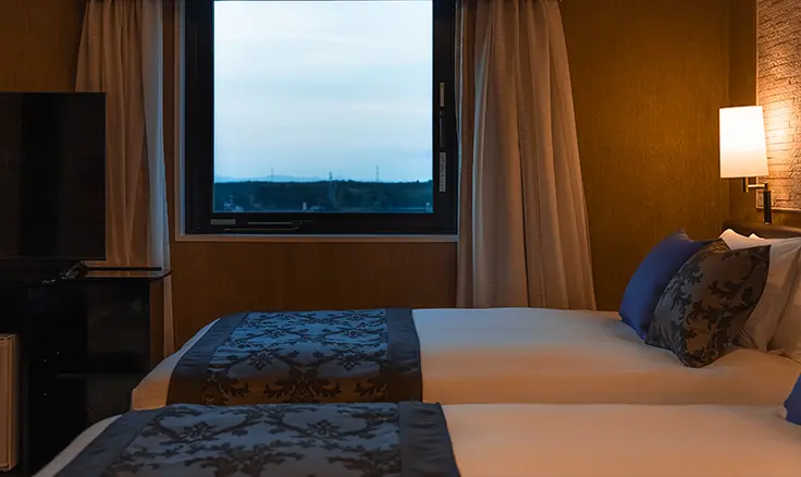 セミダブルのベッドが2つ入ったお部屋です。通常のお部屋よりも少し広く、荷物を広げるのにも便利。